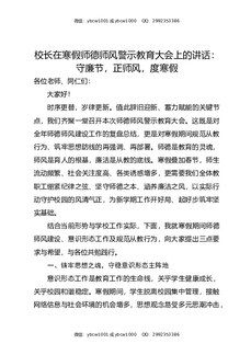 校长在寒假师德师风警示教育大会上的讲话:守廉节,正师风,度寒假.docx