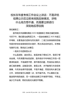 校长在年度考核工作会议上讲话:不是评优结果公示后立即来找我反映情况,讲有什么地方想不通,而是要立即进行深刻地反思自我.doc