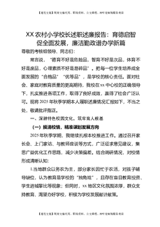 XX农村小学校长述职述廉报告:育德启智促全面发展,廉洁勤政谱办学新篇.doc