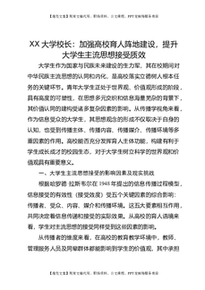 XX大学校长:加强高校育人阵地建设,提升大学生主流思想接受质效.doc