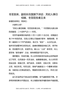 冬至到来,副校长在国旗下讲话:天时人事日相催,冬至阳生春又来.doc
