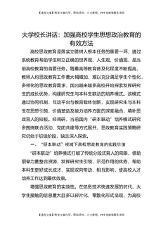 大学校长讲话:加强高校学生思想政治教育的有效方法.doc