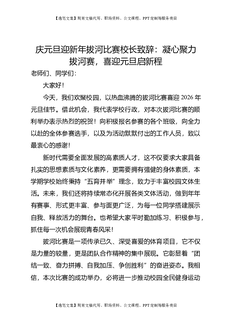 庆元旦迎新年拔河比赛校长致辞:凝心聚力拔河赛,喜迎元旦启新程.doc
