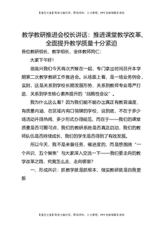教学教研推进会校长讲话:推进课堂教学改革、全面提升教学质量十分紧迫.doc