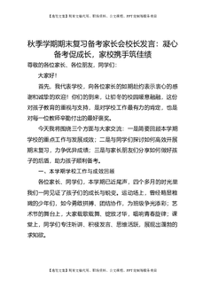 秋季学期期末复习备考家长会校长发言:凝心备考促成长,家校携手筑佳绩.doc