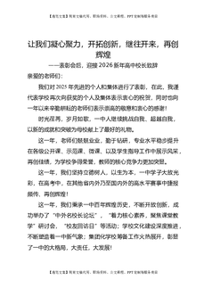 表彰会后,迎接2026新年高中校长致辞:让我们凝心聚力,开拓创新,继往开来,再创辉煌.doc