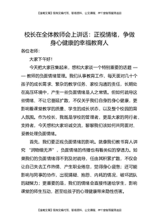 校长在全体教师会上讲话:正视情绪,争做身心健康的幸福教育人.docx