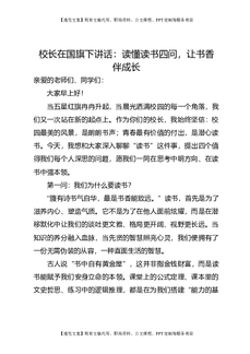 校长在国旗下讲话:读懂读书四问,让书香伴成长.doc