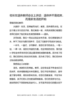 校长在退休教师会议上讲话:退休并不是结束,而是新生活的开始.doc