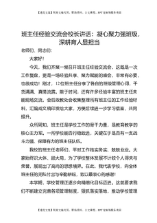 班主任经验交流会校长讲话:凝心聚力强班级,深耕育人显担当.doc