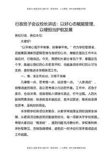 行政班子会议校长讲话:以好心态赋能管理,以硬担当护航发展.doc