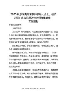2025秋季学期期末教师表彰大会,校长讲话:衷心祝愿各位老师身体健康,工作顺利.doc
