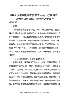 2025秋季学期期末教职工大会,校长讲话:以无声耕耘铸魂,驭奋进之姿逐光.docx