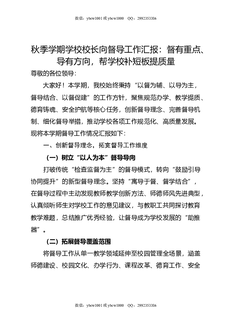 秋季学期学校校长向督导工作汇报:督有重点,导有方向,帮学校补短板提质量.doc