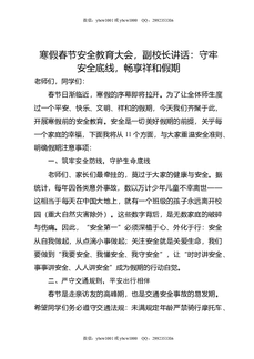 寒假春节安全教育大会,副校长讲话:守牢安全底线,畅享祥和假期.doc
