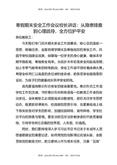 寒假期末安全工作会议校长讲话:从隐患排查到心理疏导,全方位护平安.doc