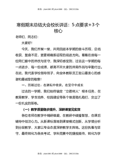 寒假期末总结大会校长讲话:5点要求,3个核心.doc