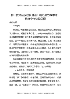 初三教师会议校长讲话:凝心聚力战中考,信守中考奖励兑现.doc