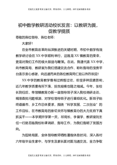 初中数学教研活动校长发言:以教研为翼,促教学提质.doc