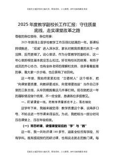 2025年度教学副校长工作汇报:守住质量底线,走实课堂改革之路.doc