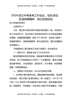 2026初三中考备考工作会议,校长讲话:发扬拼搏精神,努力实现目标.docx