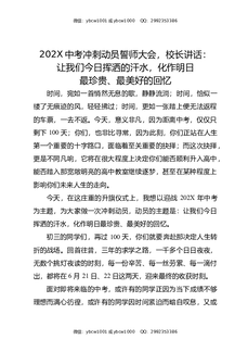 202X中考冲刺动员誓师大会,校长讲话:让我们今日挥洒的汗水,化作明日最珍贵,最美好的回忆.docx