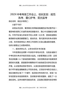202X中考考务工作会上,校长发言:规范执考,爱心护考,阳光监考.docx