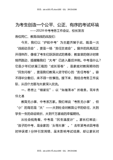 202X中考考务工作会议,校长发言:为考生创造一个公平,公正,有序的考试环境.docx