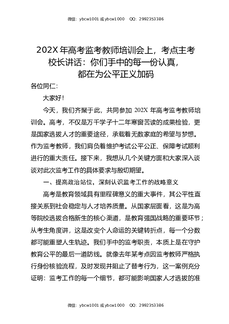 202X年高考监考教师培训会上考点主考校长讲话:你们肩上的每一份担当,都在为万千梦想护航.docx