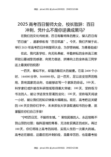 202X高考百日誓师大会,校长致辞:百日冲刺,凭什么不是你逆袭成黑马?.docx