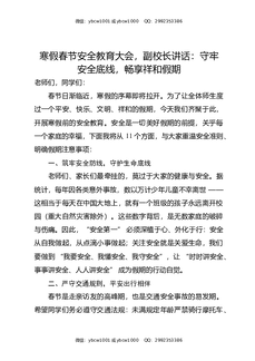 寒假春节安全教育大会,副校长讲话:守牢安全底线,畅享祥和假期.docx