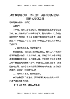 分管教学副校长工作汇报:以身作则担使命,深耕教学促发展.doc