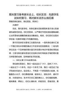 期末复习备考家长会上,校长发言:先跟学生谈如何复习,再对家长说怎么做后盾.doc