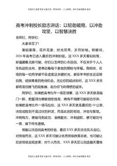 高考冲刺校长励志讲话:以韧劲破局,以冲劲攻坚,以智慧决胜.doc