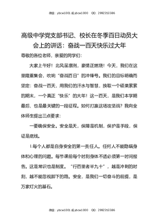 高级中学党支部书记、校长在冬季百日动员大会上的讲话:奋战一百天快乐过大年.docx