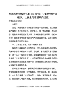 全市农村学校校长培训班发言:守好农村教育根脉,让安全与希望双向绽放.doc