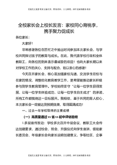 全校家长会上校长发言:家校同心育桃李,携手聚力促成长.doc