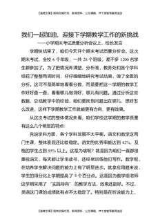 小学期末考试质量分析会议上,校长发言:让我们一起加油,迎接下学期教学工作的新挑战.docx