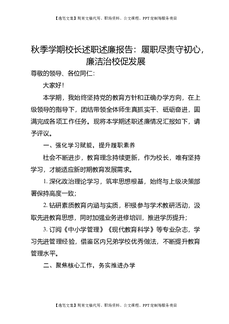 秋季学期校长述职述廉报告:履职尽责守初心,廉洁治校促发展.doc