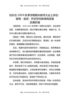 校长在202X秋季学期期末教师大会上讲话:破局,奋进:开启学校教育高质量发展新篇.docx