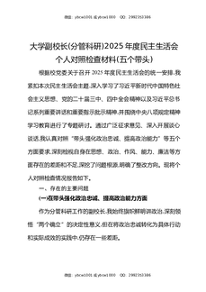 大学副校长(分管科研)2025年度民主生活会个人对照检查材料(五个带头).docx