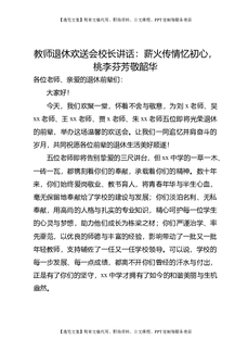 教师退休欢送会校长讲话:薪火传情忆初心,桃李芬芳敬韶华.doc