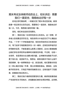 期末考试全体教师动员会上,校长讲话:需要我们一直坚持,稳稳地走好每一步.docx