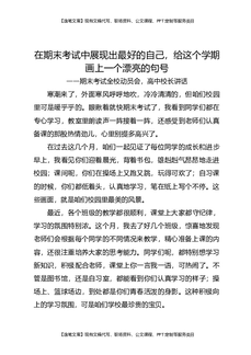 期末考试全校动员会,高中校长讲话:在期末考试中展现出最好的自己,给这个学期画上一个漂亮的句号.docx