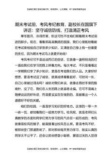 期末考试前,考风考纪教育,副校长在国旗下讲话:坚守诚信防线,打造清正考风.docx