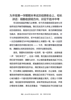 九年级第一学期期末考试总结表彰会上,校长讲话:细数收获明方向,卯足干劲冲中考.docx