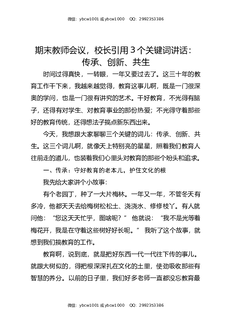 期末教师会议,校长引用3个关键词讲话:传承,创新,共生.docx