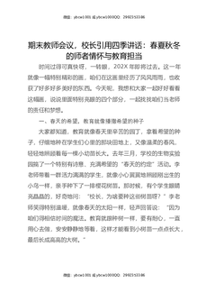 期末教师会议,校长引用四季讲话:春夏秋冬的师者情怀与教育担当.docx