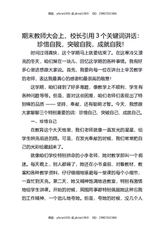 期末教师大会上,校长引用3个关键词讲话:珍惜自我,突破自我,成就自我!.docx