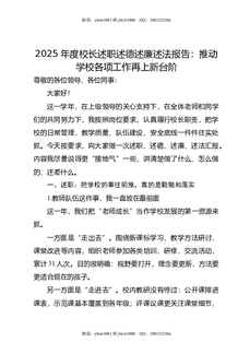 2025学年校长述职述德述廉述法报告:推动学校各项工作再上新台阶.doc